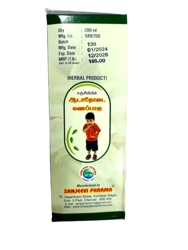 ஆடாதோடை மணப்பாகு சிரப் - இது இருமல் மற்றும் பல்வேறு வகையான சுவாச தொற்றுகளுக்கு நல்லது. இது ஒரு சிறந்த பாக்டீரியா எதிர்ப்பு கூறுகளைக் கொண்டுள்ளது.