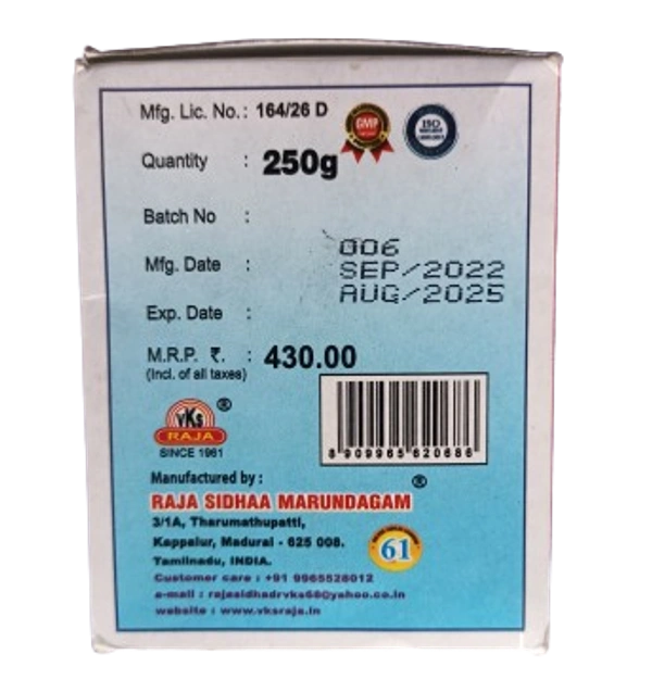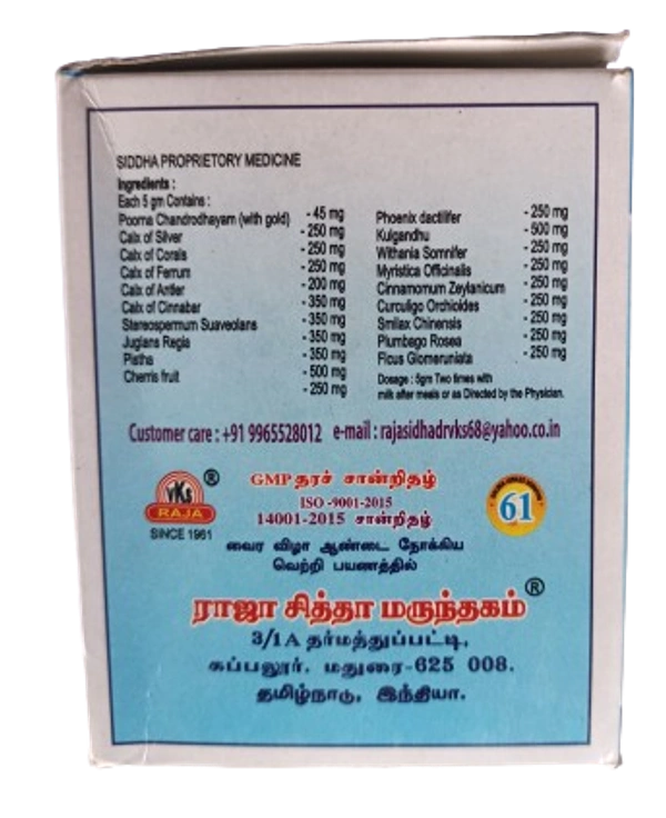அளவு: காலை மற்றும் மாலை உணவுக்குப் பிறகு வெதுவெதுப்பான நீர் அல்லது பாலுடன் 2 கிராம் எடுத்துக் கொள்ளுங்கள்.