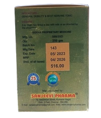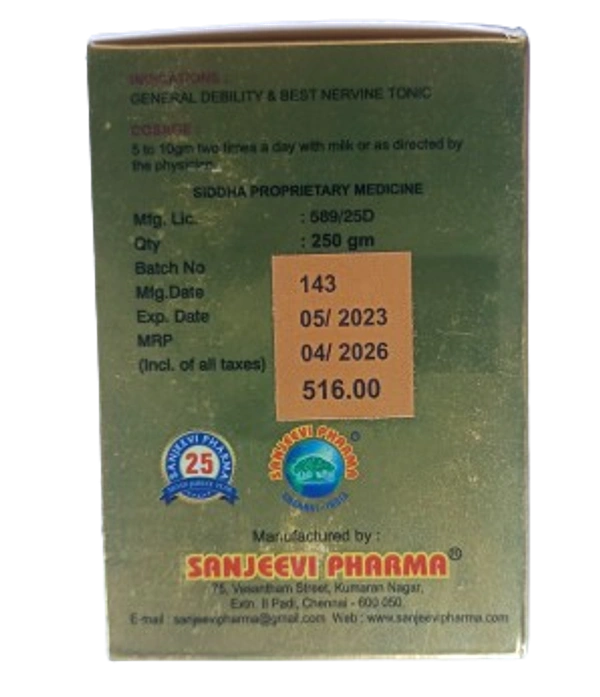 அளவு: காலை மற்றும் மாலை உணவுக்குப் பிறகு வெதுவெதுப்பான நீர் அல்லது பாலுடன் 2 கிராம் எடுத்துக் கொள்ளுங்கள்.
